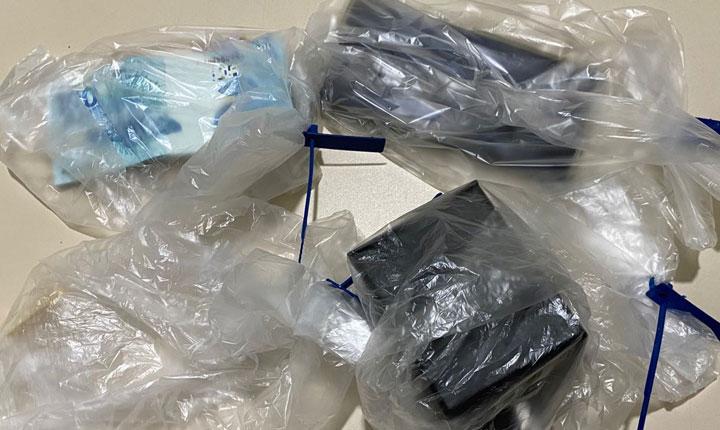Durante o cumprimento do mandado de busca e apreensão na manhã de hoje, foram encontrados na residência do investigado um aparelho celular, um relógio de grife, um cordão aparentemente de ouro, dinheiro e uma cópia da chave da residência da vítima.